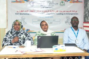 وقالت مديرة صحة الأم والطفل بوزارة الصحة الاتحادية د. اسمهان الخير،إن تدريب المدربين استثمار حقيقي ومباشر لصالح مستقبل أطفال السودان ، واضافت “نحن اكثر حاجة في هذا الوقت ليكون لدينا الحزم التدريبية التي تمكننا من الإستجابة السريعة للطوارئ وباقل تكلفة “، منوهة إلى ان برنامج التغذية متجه نحو تقوية كل التدخلات الوقائية وعلى رأسها تغذية الرضع وصغار الأطفال،مما يستدعي منا جميعا دعم هذه الاستراتيجية،
