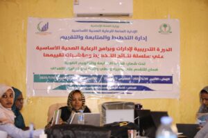 من جانبها قطعت مديرة إدارة التخطيط والمتابعة والتقييم بالإنابة تيسير الصادق، بأن التخطيط والمتابعة والتقويم ركيزة أساسية في الإدارة العامة للرعاية الصحية الأساسية وضمان لفاعلية ونجاح إستراتيجيات وأهداف الرعاية الصحية الاساسية، واضافت أن النتائج المتوقعة من الدورة التدريبية ستنعكس إيجاباً على تحسين متابعة مؤشرات تدخلات الرعاية الصحية الأساسية، منوهة إلى نجاح الدورة الأولى وتحقيق أهدافها.