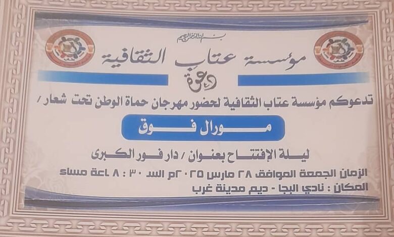 بمناسبة تحرير الخرطوم مؤسسة عتاب الثقافية تعلن عن انطلاق مهرجان (حماة الوطن) تحت شعار (مورال فوق)