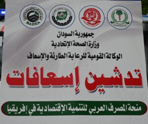 في تدشين منحة المصرف العربي للتنمية الاقتصادية في افريقيا لدعم مشروع الاسعاف القومي