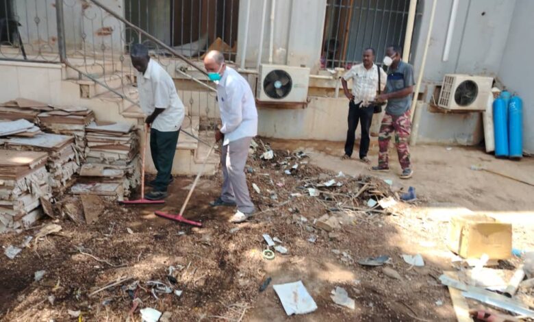 وقد انطلقت هذه الحملات بعمليات نظافة شاملة، بدأت بإزالة العربات المحترقة من داخل المستشفى، تلتها أعمال تنظيف واسعة شملت جميع الأقسام الطبية. وتستمر الجهود حالياً في تنظيف الساحات الخارجية ومجمع العمليات، إلى جانب مراجعة حالة المولد الكهربائي الذي تعرض لأضرار كبيرة جراء التخريب.