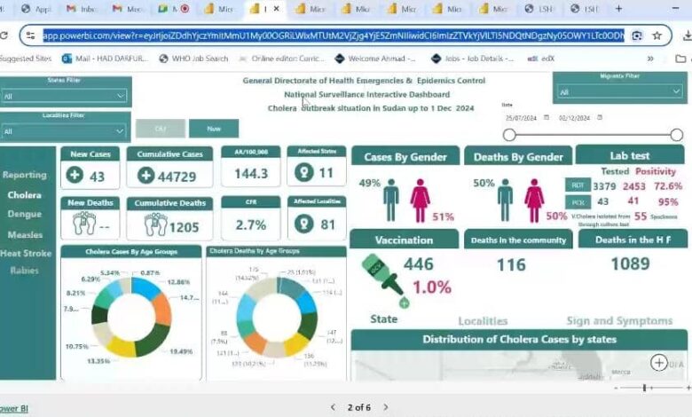 ولفت تقرير التدخلات لمكافحة الكوليرا، إلى انخفاض الدخول بمراكز العزل، عازيا ذلك لانحسار معدل الإصابات بالولايات المتأثرة بالمرض، منوها إلى استمرار التدخلات على المستوى الاتحادي مع وجود عدد من التحديات،ومنها الحاجة لمزيد من مراكز العزل لمجابهة النزوح من شرق الجزيرة.