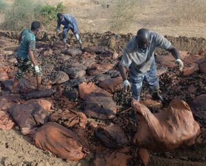 وقاية النباتات بوزارة الإنتاج بسنار تبيد (120) جوال بطاطس زنة (50)كيلو مهربه من احد دول الجوار